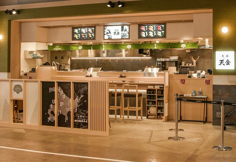 プロ野球チーム「北海道日本ハムファイターズ」の本拠地・エスコンフィールドHOKKAIDO内、2F「MAIN LEVEL 七つ星横丁」に店を構える寿司店では、旭川の老舗「天金本店」が手がける本格寿司を気軽に楽しめます。北海道産の新鮮な魚介を使用し、職人が一貫ずつ丁寧に握る寿司は、フードコートの枠を超えた高い品質が魅力です。店内にはカウンター席やテーブル席を備え、観戦前の食事にも最適。テイクアウトにも対応しており、観客席で“球場飯”として味わえるのも特徴です。野球開催日以外にも観光客が訪れる人気店として、多くの来場者を魅了しています。