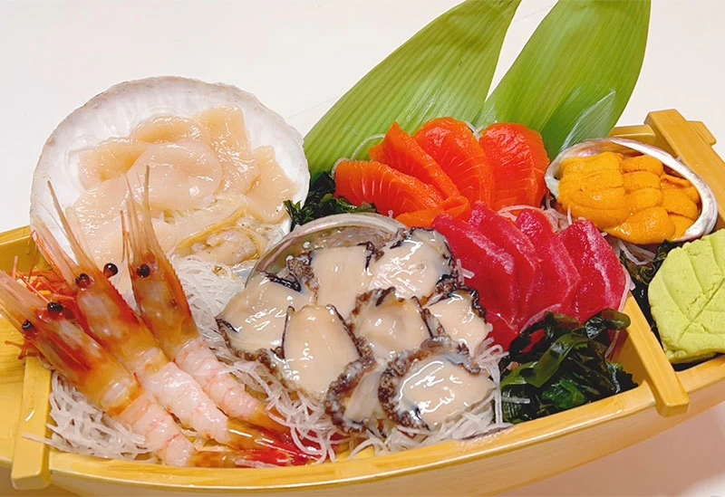 地元の人々も足繁く通うこの名店で、特に夏に味わいたいのが「湧別産活帆立の刺身」。肉厚で弾力があり、噛むほどに広がる強い甘みは絶品です。さらに、濃厚な「うに刺し」や「活帆立の天婦羅」など、素材を活かした多彩なメニューが揃います。
