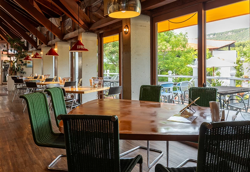 地元食材を使い、フランスで腕を磨いたオーナーとシェフが作る本場の味が自慢です。モーニングからディナーまで、時間とともに移りゆく瀬戸内海の美しい風景とともに、本格フレンチを堪能する贅沢なひとときが過ごせます。ランチには、旬の食材を使用した季節のスープからデセールまでお楽しみいただけるスタンダードコース(3,000円)と、お肉と魚両方が食べられる豪華なプレミアムコース(5,000円)がおすすめ。