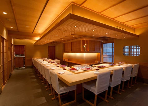 旬のネタを引き立てるため、職人ならではの繊細なバランスを大切に、2種類のシャリを使い分ける本格江戸前寿司店。ビルの2階にある店内には、職人の仕事ぶりを見ながら寿司が堪能できるカウンター席を用意しています。プライバシーを重視したい場合は、黒を基調とした落ち着いた雰囲気の個室がおすすめ。極上の江戸前寿司を味わいながら、大切な人と至福のひと時を過ごしてみてはいかがでしょうか。