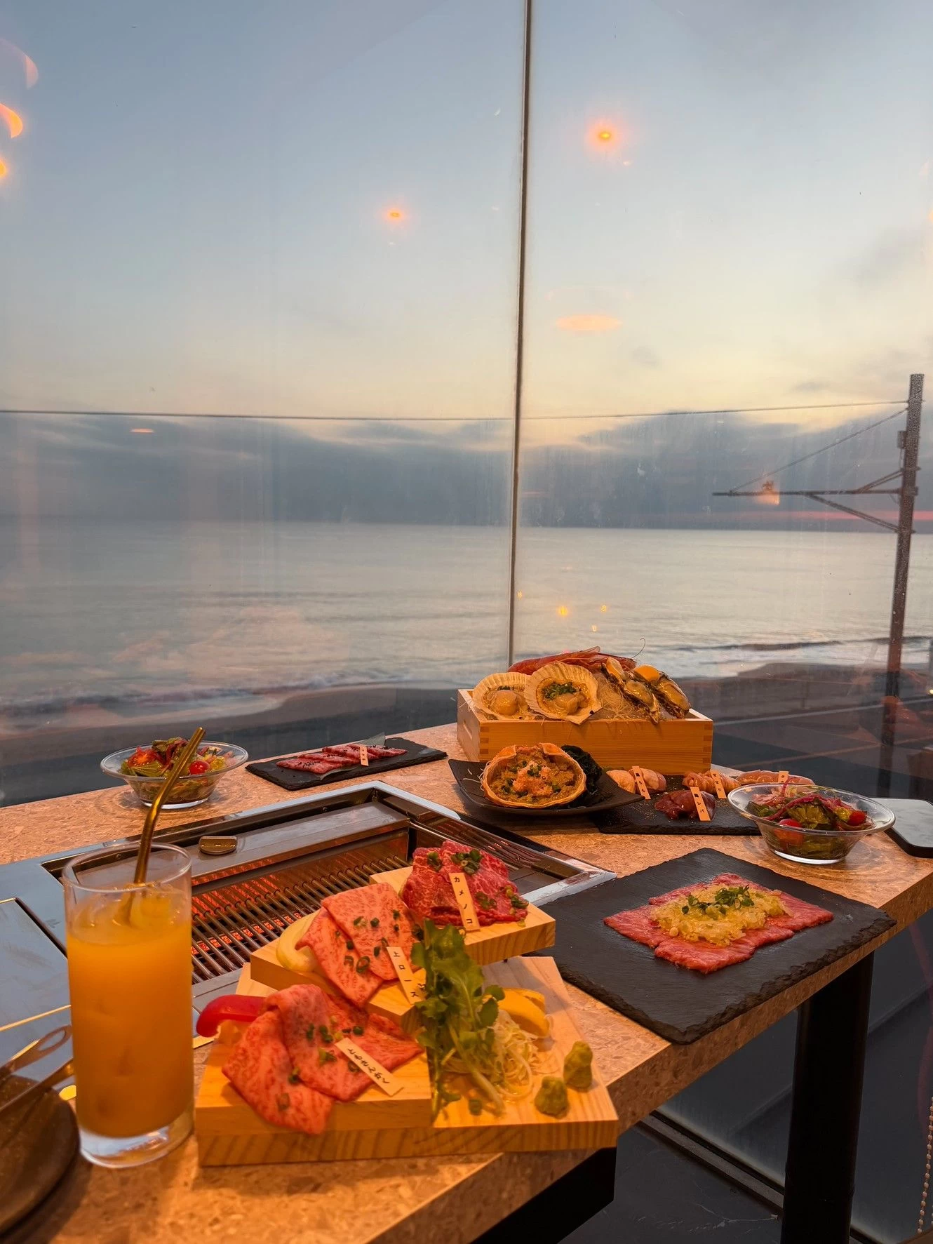 和モダンな空間で、鎌倉らしい海鮮の浜焼きや質の高い焼き肉が味わえるお店。ちょっと意外な組み合わせですが、日本蕎麦も置いています。朝から開いているので、七里ヶ浜を眺めながら、時間を気にせず食事と語らいの時間を過ごすのも良いでしょう。ペット同伴OK、ワンちゃん連れのカップルにもおすすめです。