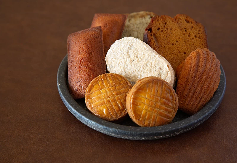 「京都 三代目 太三郎」は、日本茶と和菓子で和風なアフタヌーンティーをいただけるカフェです。和菓子はフレンチレストラン出身の職人が作っており、味だけでなく見た目も美しい点が魅力。提供される日本茶は3煎目まで楽しめるものが多く、お湯を注ぐたびに変わっていく味わいを堪能できます。店内の至るところに盆栽が飾ってあり、日本庭園のような雰囲気のなかでのんびりとした時間を過ごせます。