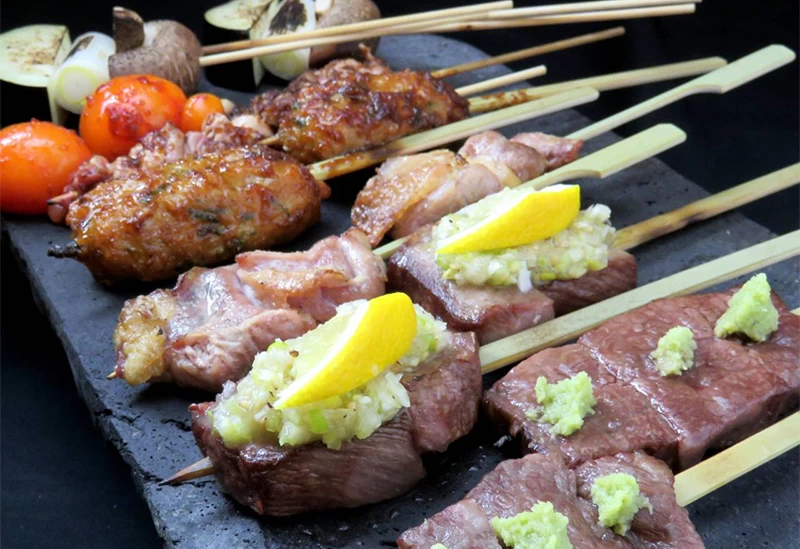 中でも人気なのが 「阿蘇山溶岩焼」 。阿蘇山の溶岩を使って肉や野菜を焼き上げる調理法で、 溶岩の遠赤外線効果により、素材がふっくらジューシーに仕上がります 。また、旨みの強い あか牛を使った肉寿司や牛串からは、肉質の良さをしっかりと感じられます 。肉寿司は種類も豊富で、さまざまな味わいを楽しめるのも魅力です。