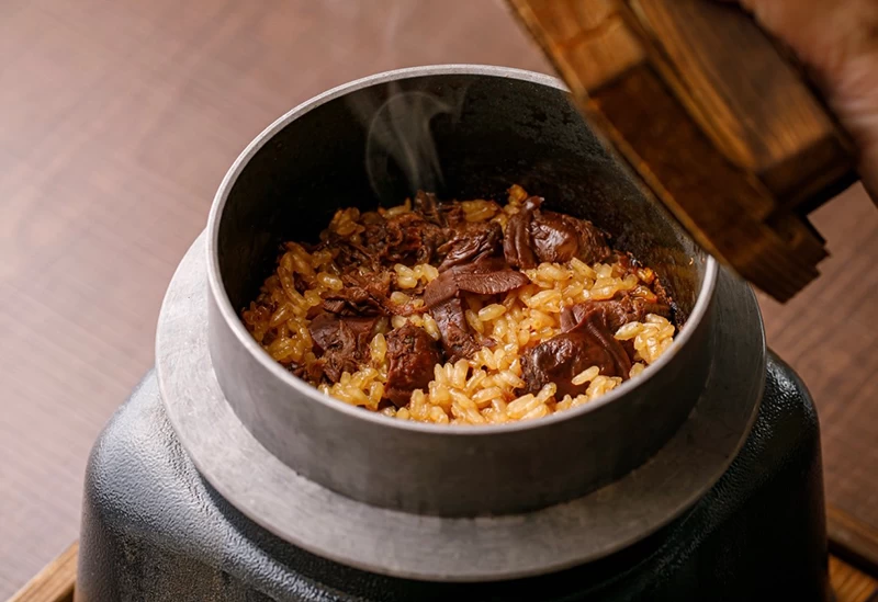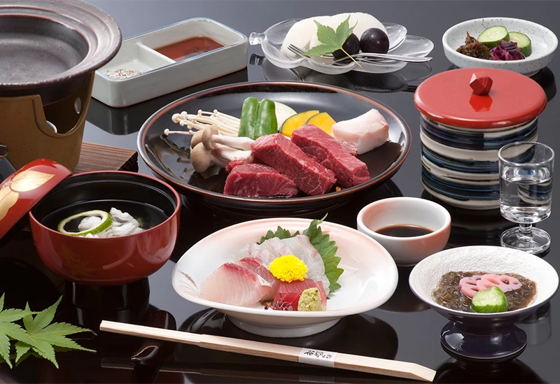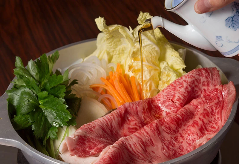 霜降り肉ならではの上品な甘みと、とろけるような柔らかさは格別。専属の仲居が目の前で仕上げるすき焼きやしゃぶしゃぶなど、受け継がれてきた伝統の味を心ゆくまでお楽しみください。誕生日や記念日などの特別なディナーにぜひどうぞ。