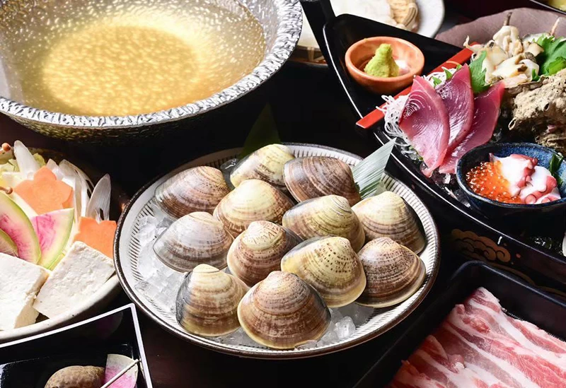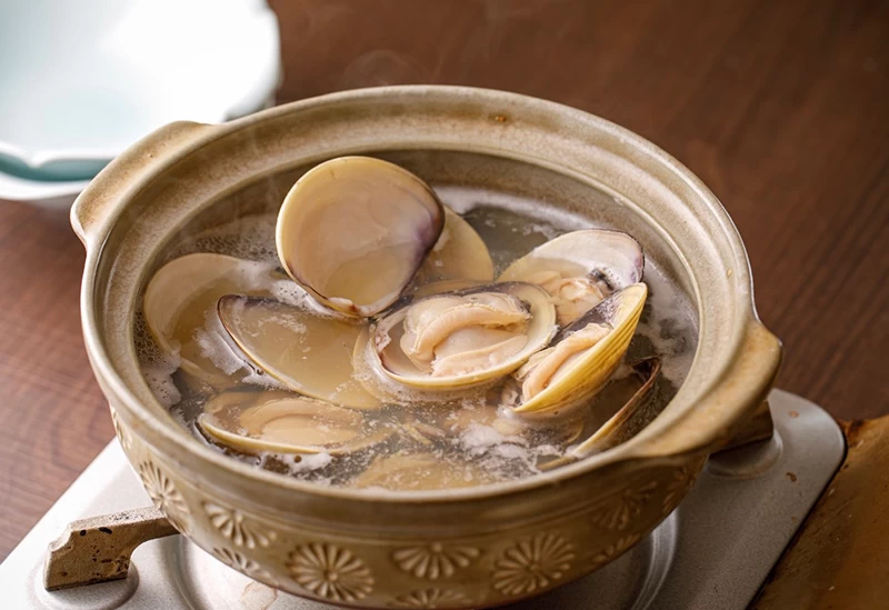 JR桑名駅からすぐの好立地にある「蛤将軍 桑名本店」では、桑名名物として知られる天然ハマグリを中心に、三重県の豊かな食材を活かした料理を味わえます。名物の焼きはまぐりは、やわらかな食感と程良い塩気が素材本来の旨味を引き立てる逸品。さらに、天然ハマグリを贅沢に使用したしゃぶしゃぶ鍋は、野菜のダシと貝の旨味が溶け合い、最後の一口まで楽しめます。市場直送の鮮魚や松阪牛など、多彩な料理も魅力です。木のぬくもりを感じる店内には掘りごたつ席を備え、少人数の食事から宴会まで幅広く対応。地元の美酒とともに、桑名ならではの味覚をゆったりと堪能できる一軒です。