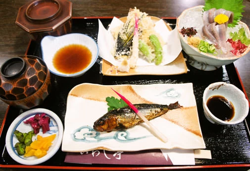 料理は50種類以上あり、天ぷらや刺身、イワシづくしの会席料理まで楽しめます。さらに、答志島産のしらすを使った生しらす丼も人気で、素材の質の高さをしっかりと感じられる一品です。