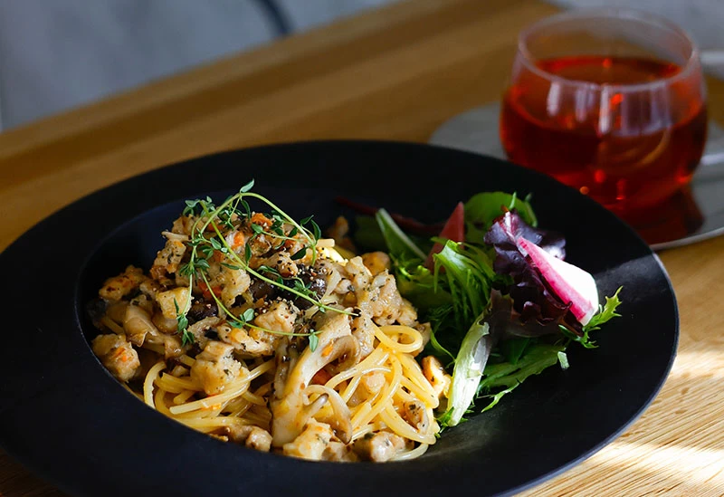 こちらのお店は、昼はカフェ、夜はワインバーとして営業しており、落ち着いた照明と心地良い音楽の中で、ゆったりと上質な時間を過ごせます。