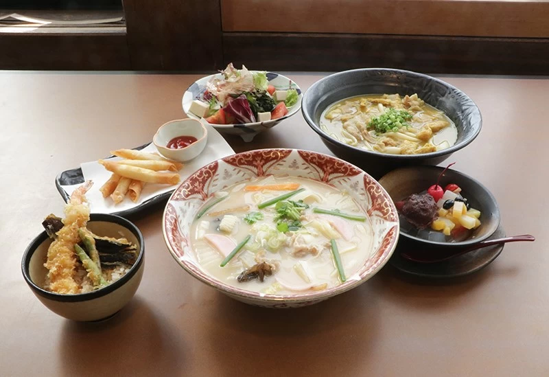 人生の節目やお祝いなど、ハレの日にも利用されるうどん店。和テイストの個室を完備しており、気取らずリラックスしたランチタイムを過ごしたい方におすすめです。メニューに迷ったら、人気の「天ざるうどん」か「酸辣スープうどん」がおすすめ。つるっとした喉越しが特徴の手延べうどんは、どこか安心感のある味わいです。うどん以外にも天重などご飯ものや甘味が揃っており、お品書きが豊富なのもうれしいポイントです。