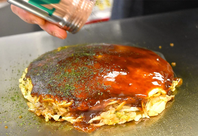王道のお好み焼きに“はつせ”のダブルソースが決め手
