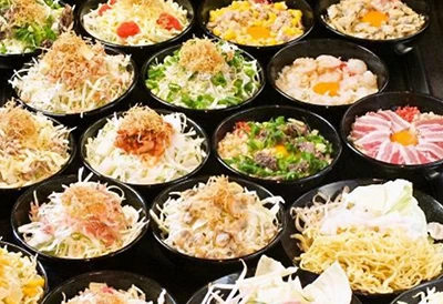 種類豊富なもんじゃ焼きとお好み焼きを食べ放題で堪能できる