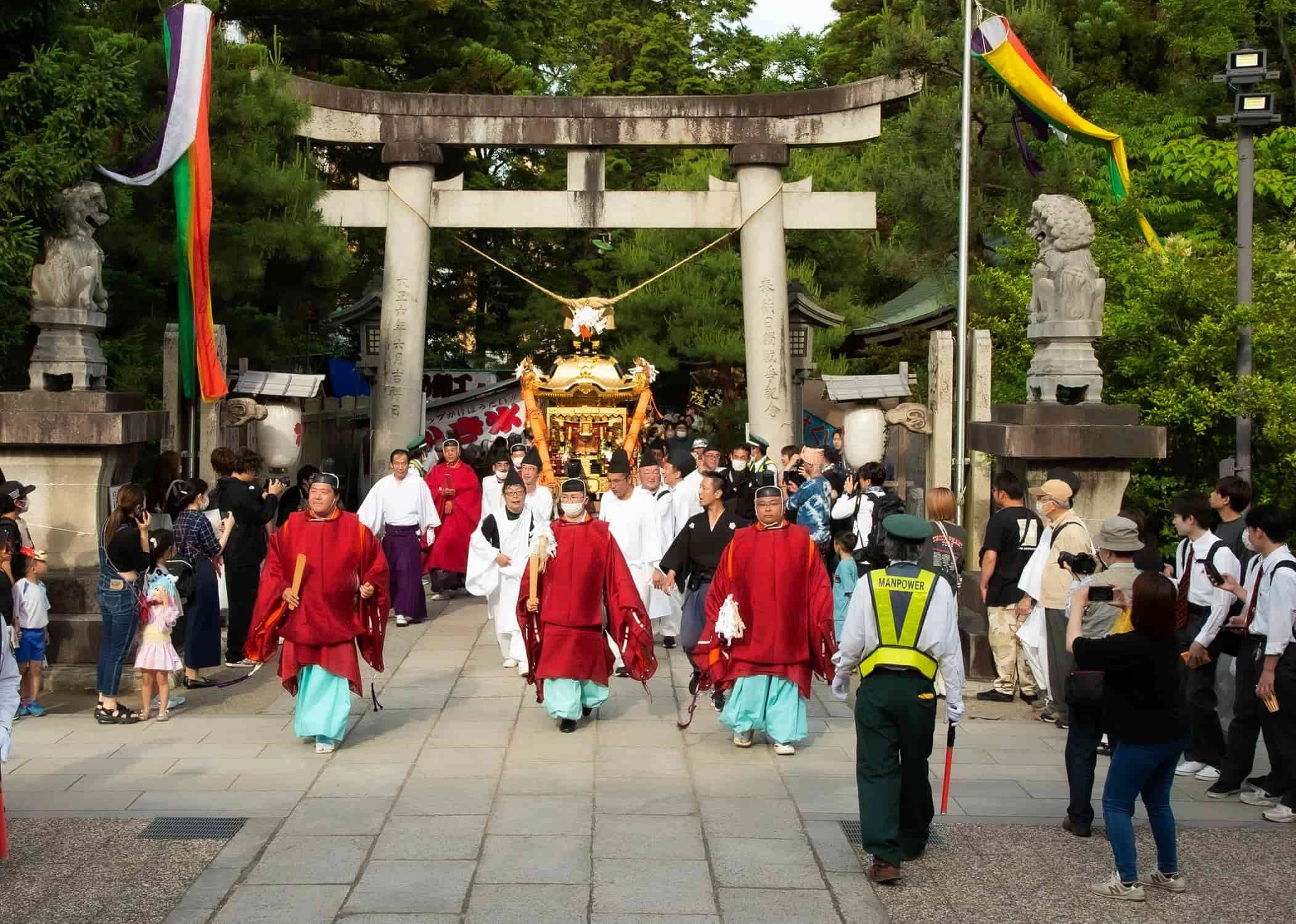 建速須佐之男尊を主祭神とし稲田姫命、泉丸皇子を祀っている神社。神仏習合の頃には牛頭天王をお祀りしていたことから『お天王さん』と呼ばれ、境内には晴明神社・蛭児宮・稲荷神社・白山神社など、さまざまな神様を祀る摂社が点在しています。ご祈祷も行っており、合格祈願や交通安全など、さまざまな願意の授与品も用意されています。