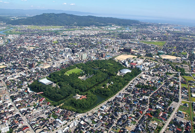 金沢市の中心部に位置する尾山神社。加賀百万石を築いた藩祖・前田利家公と正室お松の方を御祭神とし、夫婦円満や良縁祈願、受験やスポーツの試合、大きな商談などの勝負事を祈願する人も多く訪れます。
