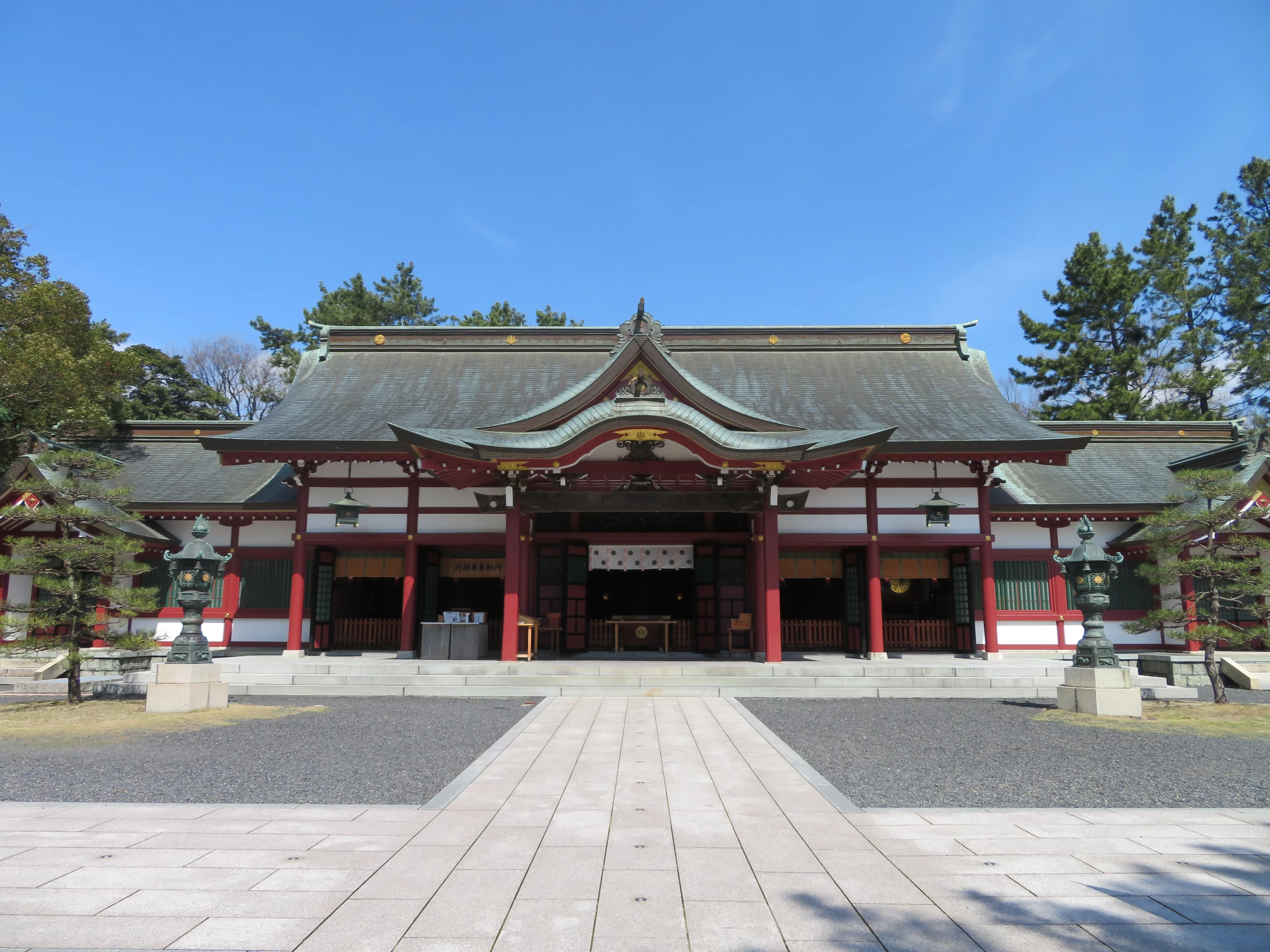 富山県高岡市の高岡古城公園内にある越中一宮の格式高い神社。「第一鳥居」は、2015年に伊勢の神宮の豊受大神宮(外宮)御正宮奥「板垣北御門(鳥居)」を特別に譲り受けて建てられた木曽檜製の高さ約4.8m、幅約6.5m、間口約 3.8mの神明鳥居。ほかに季節の花手水や樹齢約400年の御神木「八重紅梅」など見どころも満載です。初詣期間の1月2日には『富山県若鳶会』による「吉例 木遣り・纏振り」が奉納され、初春の古城の杜に江戸木遣りが響く中、勇ましく纏が振られますよ。