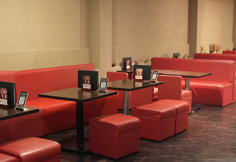 茶室に入る前には、小さな日本庭園を眺めつつ心を落ち着ける「腰掛け待合」の空間も用意。和の静けさと香りに包まれ、日常を忘れる特別なひとときが過ごせます。