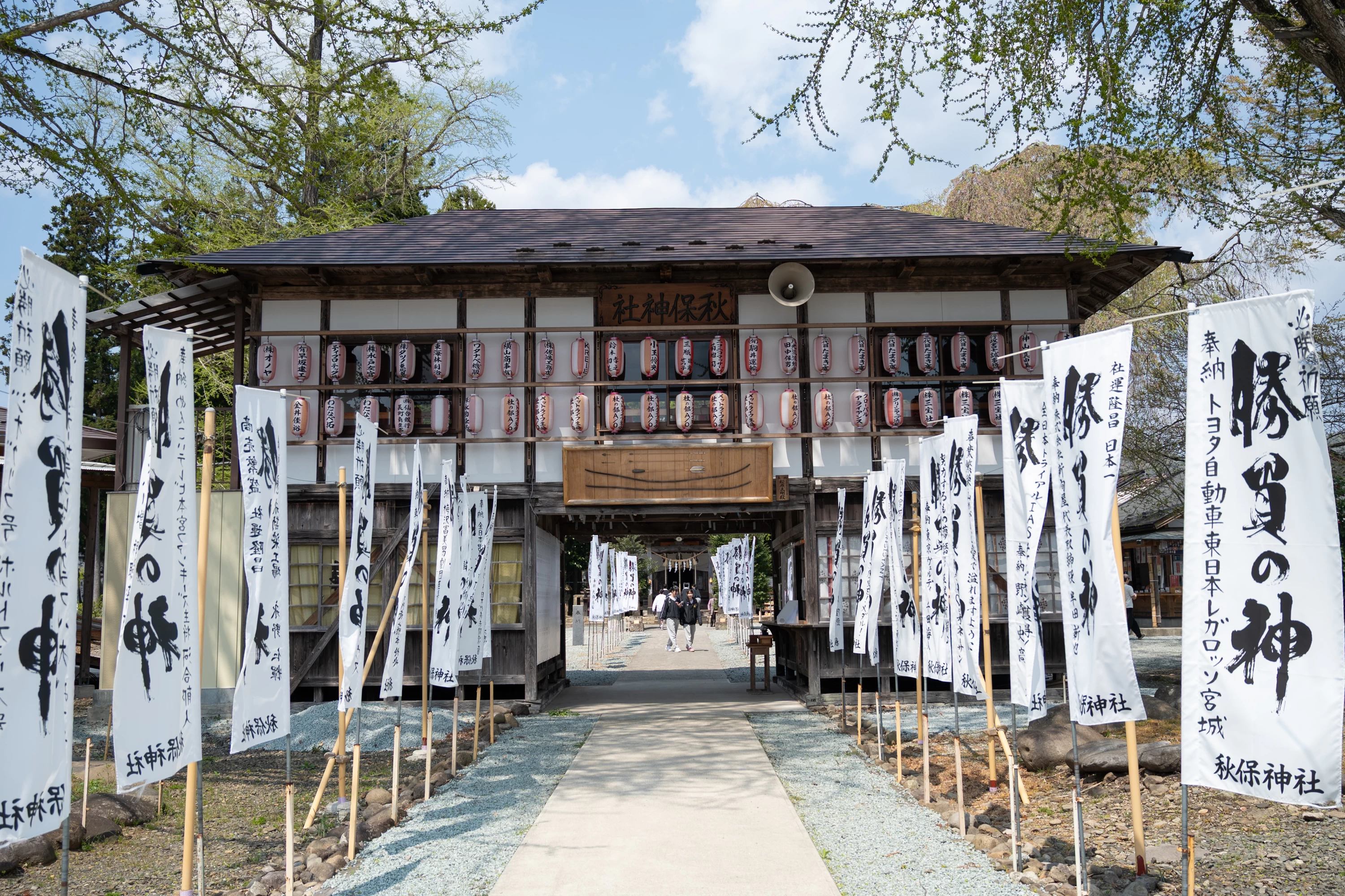 東北自動車道仙台南ICより車で約30分の距離と、アクセス良好な秋保神社。勝負の神様を祀り、多くのプロ選手が必勝祈願に訪れることで知られる。創建は1200年以上前で、のちに勝運の神様を崇める諏訪信仰と結び付いた。境内には「勝負の神」と書かれたのぼりが風にはためき、まるで見えない力が開運を応援してくれるかのよう。霊石「勝石」や開運の御神木があり、御加護を身につけられるお守りや多種多様な御朱印なども話題。神楽殿では伝統芸能が奉納され、信仰と歴史、自然が調和しながら時を刻んでいる。