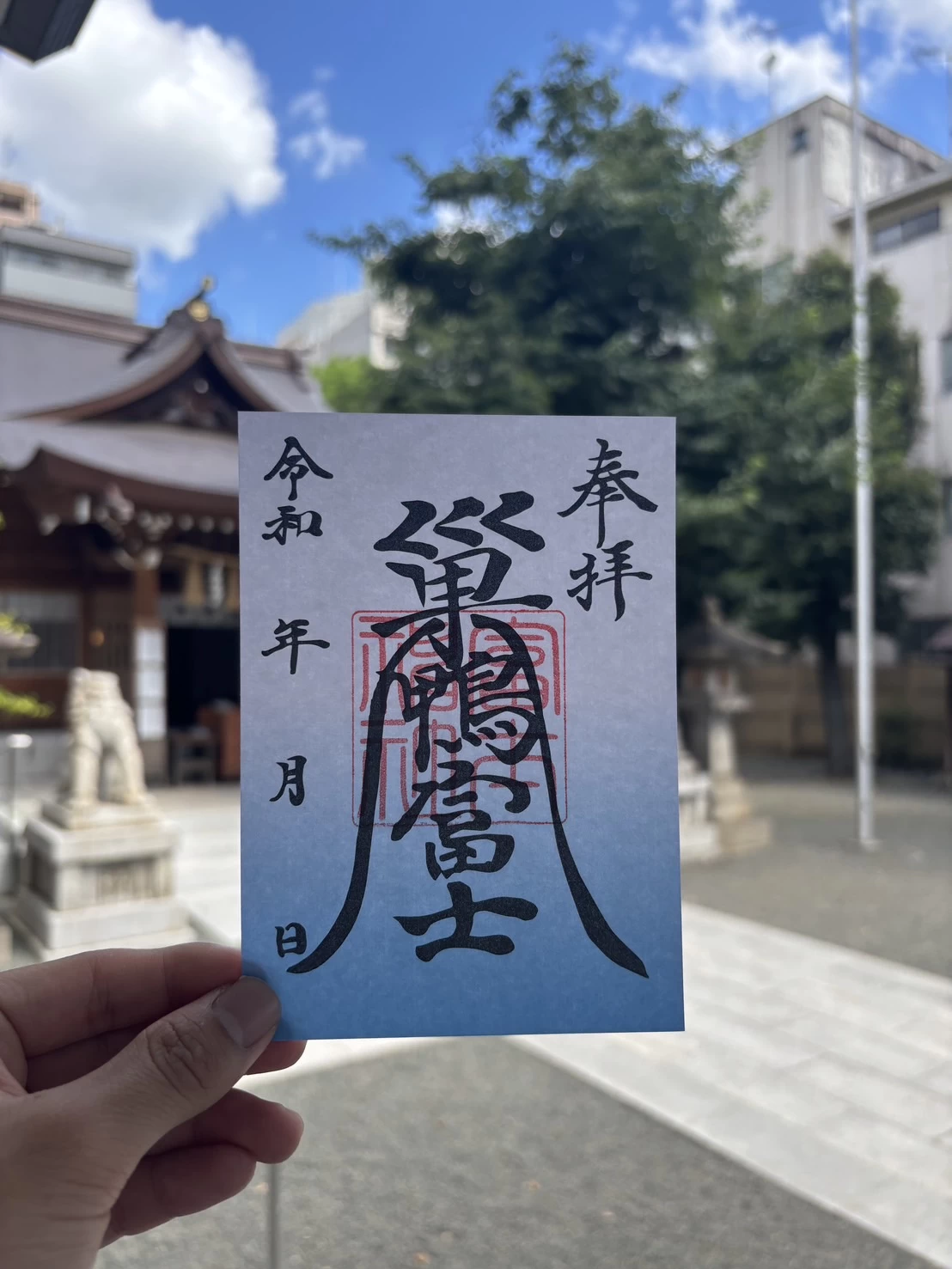 神職による直書きの御朱印と書き置きの御朱印に加え、末社・富士神社の書き置き御朱印も頒布されている。社務所で受け付けており、歴史ある社の神聖な雰囲気を感じながらいただけるのが魅力。