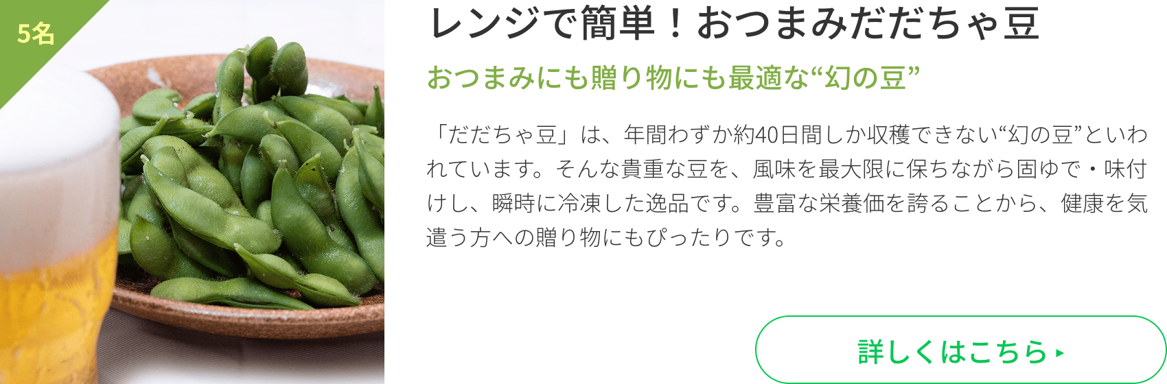 - 応募規約(以下「本規約」という)とは、株式会社ブランジスタメディア(以下「当社」という)が提供するだだちゃ喜左衛門株式会社の「レンジで簡単!おつまみだだちゃ豆」プレゼントキャンペーン(以下「本懸賞」という)について、本懸賞への応募者(以下「応募者」という)及び当社が遵守すべき事項と諸条件を明確にするために定めるものです。