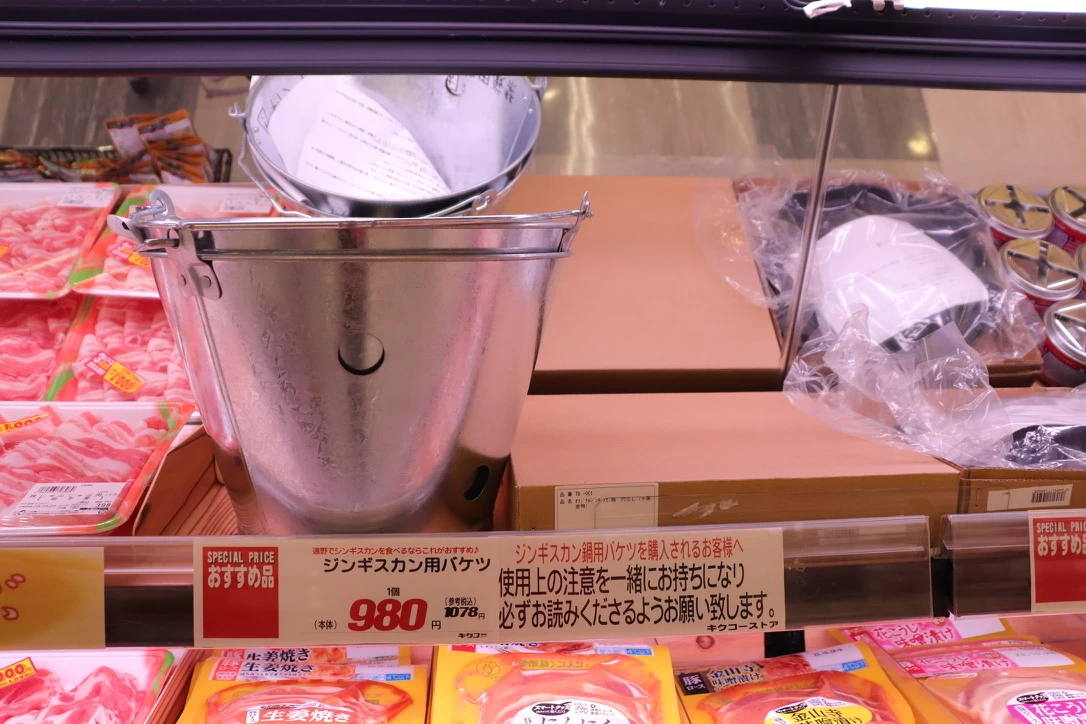 - ★ SPOT2で度肝を抜かれた、遠野名物バケツで焼くジンギスカン。ジンギスカン用のお肉やオリジナルのタレだけでなく、ここではバケツや鍋も販売しています。鍋は少々お値段が張り、重量がありますが、南部鉄器のお値打ちもの。セットで買って帰れば、ご自宅のお庭でもバケツジンギスカンが楽しめますよ