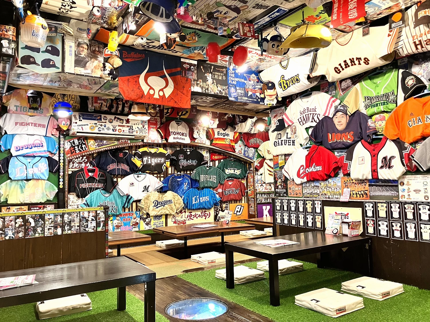 ひいきのチームやファン歴、年齢性別など一切問わず、野球愛好家であれば誰でも楽しめる全天候型の野球居酒屋。野球グッズであふれた場内では、6台のモニターで連夜プロ野球を中継している。