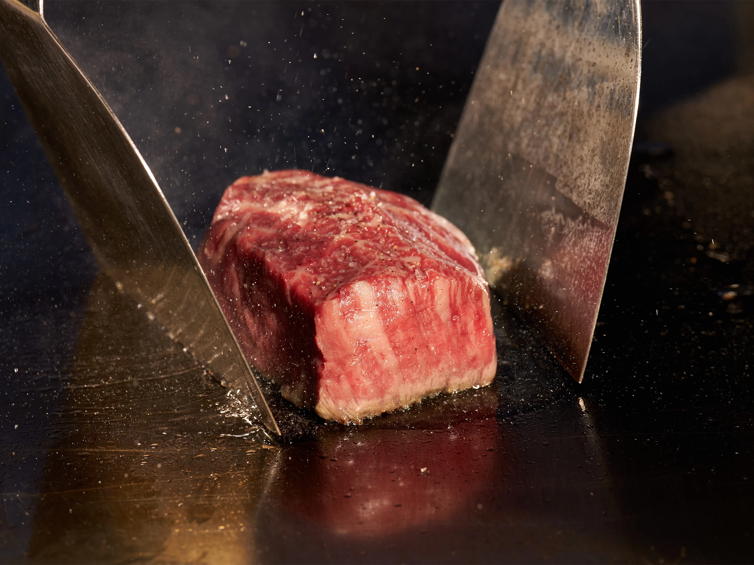 - ★ ディナータイムは、厳選した国産牛や新鮮な魚介、旬野菜を目の前で焼き上げる鉄板焼きが魅力。 香り、音、そして旨み。ライブ感あふれる贅沢なひと時を、落ち着いた和モダン空間で心ゆくまでご堪能ください