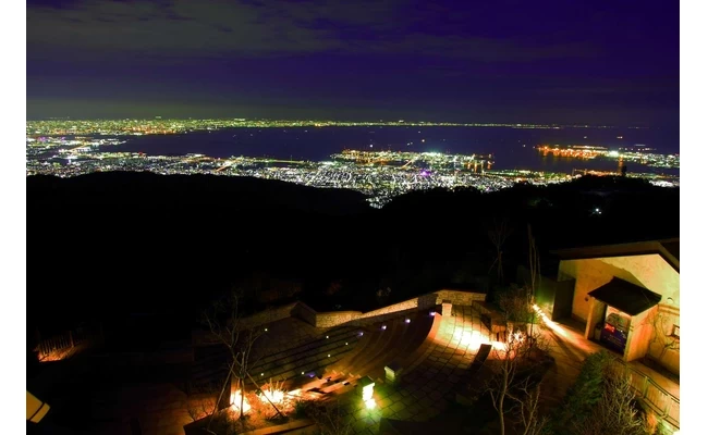 六甲ガーデンテラスのあとは、車で約20分の距離にある「掬星台(きくせいだい)」に移動して夜景を“ハシゴ”。こちらは、「日本三大夜景」のひとつに数えられ、大阪から神戸にかけて広がる息をのむほどの美しい夜景を堪能できます。まるで宝石をちりばめたような絶景のなか、2人でロマンチックな時間を過ごしてくださいね。