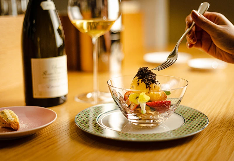 独自の感性が光るイタリア全20州の郷土料理と、多彩なワインで優雅なディナーを堪能できる「incanto」。料理の色彩が美しく映える器の配置やカトラリーの輝きなど、視線の流れや動作まで計算されたテーブルコーディネートが特別な時間を演出します。オーナーソムリエが選び抜いた2,000本以上のワインから、希少な古酒を含む40種以上のグラスワインを料理に合わせてお選びいただけます。カウンター席も備えており、ワインバーとして至福のひとときをゆったりと過ごせるのも魅力です