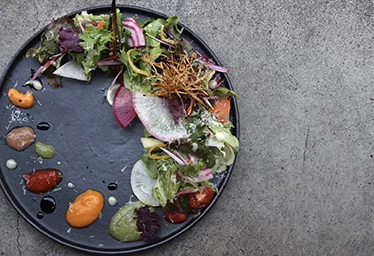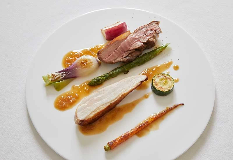神保町に佇む本格イタリアン「restaurant Kiro;」は、店名の“Kiro;”が意味する「帰路」のように、仕事帰りやお出かけのついでに立ち寄れる店。自家栽培や全国の農家から直送された旬野菜を使った彩り豊かな料理は、作家の器やシックな空間とともに、目にも楽しい食体験を提供します。なかでも「30種類以上の野菜を使うスペシャリテ」は、野菜それぞれの食感や旨味、香り、彩りが重なり、野菜の魅力を改めて感じさせてくれる一皿。さらに、ソムリエが料理や好みに合わせて選ぶ厳選の国産ワインや、日本酒、蒸留酒、リキュールも豊富に揃い、五感で味わう至福のひと時を楽しめます。