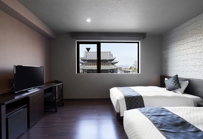 おしゃれで落ち着いた客室のベッドには、シモンズ社製を採用。心地よい眠りを提供してくれます。東本願寺ビューの客室も人気です。観光にも便利なホテルで、心ゆくまで癒やされてみてはいかがでしょうか。